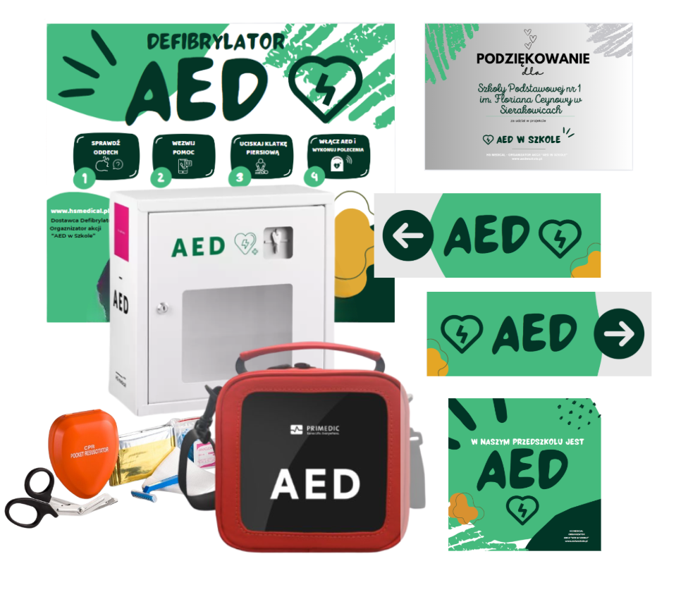 AED w szkole - to ogólnopolski projekt, dzięki któremu przedszkola oraz szkoły podstawowe i średnie wyposażają się w defibrylator AED. Wspólnymi siłami, dzięki pracom dzieci, zaangażowaniu rodziców, wsparciu szkoły i sponsorów - udaje się szybko zebrać kwotę potrzebną na pełne wyposażenie - zakup sprzętu, tablicy oraz przeszkolenie personelu.